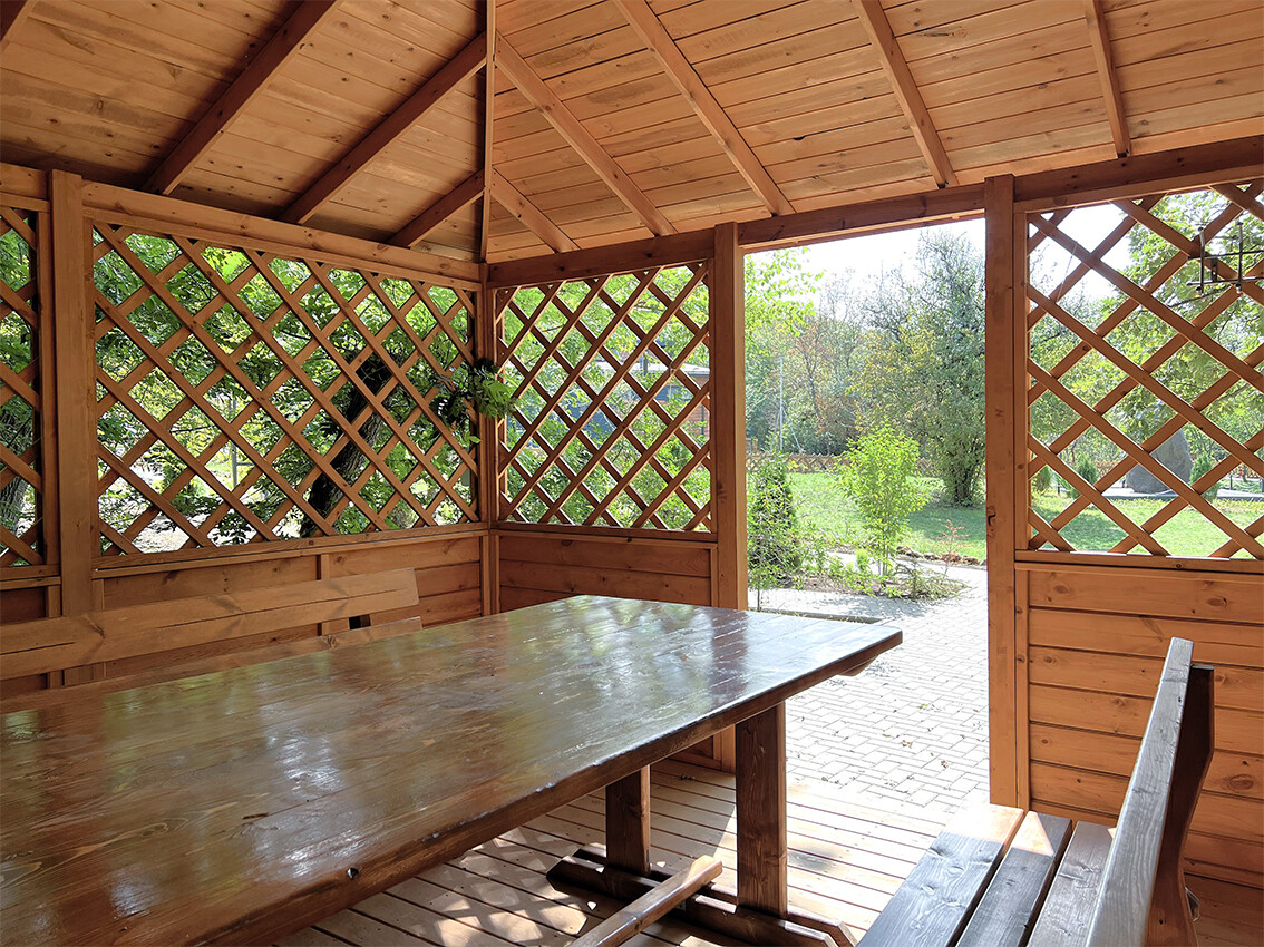 Комфортабельная беседка вместимостью до 6 человек.