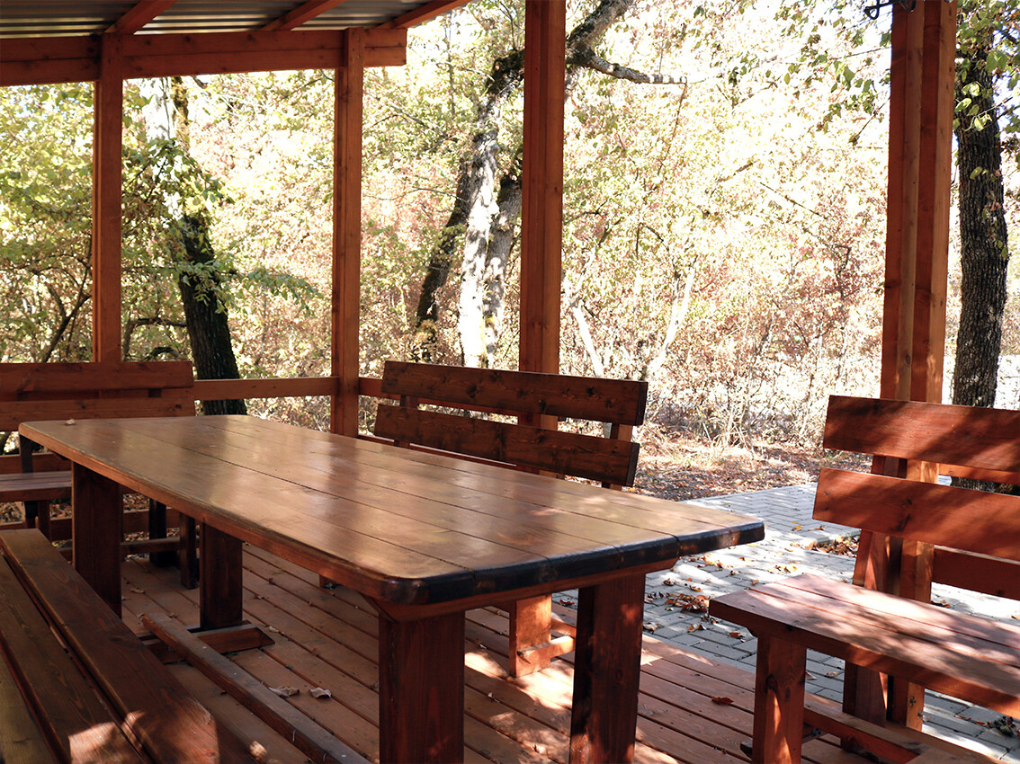 Внутри вас ждёт всё для комфортного отдыха: деревянная мебель, свет, розетки, рукомойник, разделочный столик и стационарный мангал. Дрова предоставляем. Просто возьмите с собой хорошее настроение и угощения — остальное уже готово для вашего идеального дня на природе.
